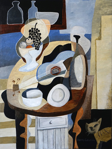 Stilleven met gitaar en fruitschaal